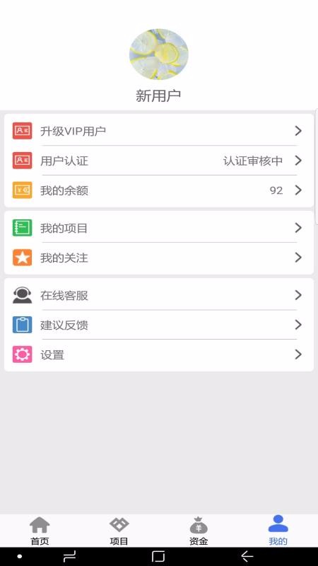 6、统一管理自己的余额、项目、关注等信息,提高管理的质量;