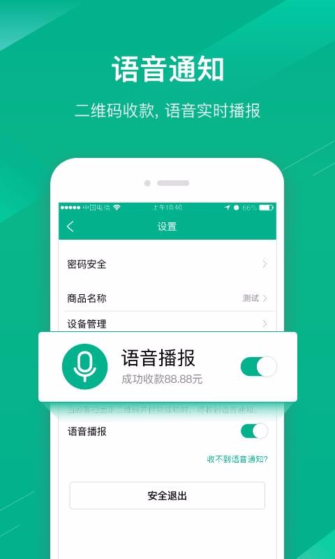 3、语音播报功能,可以设置收款语音提醒,实时播报二维码收款的语音;