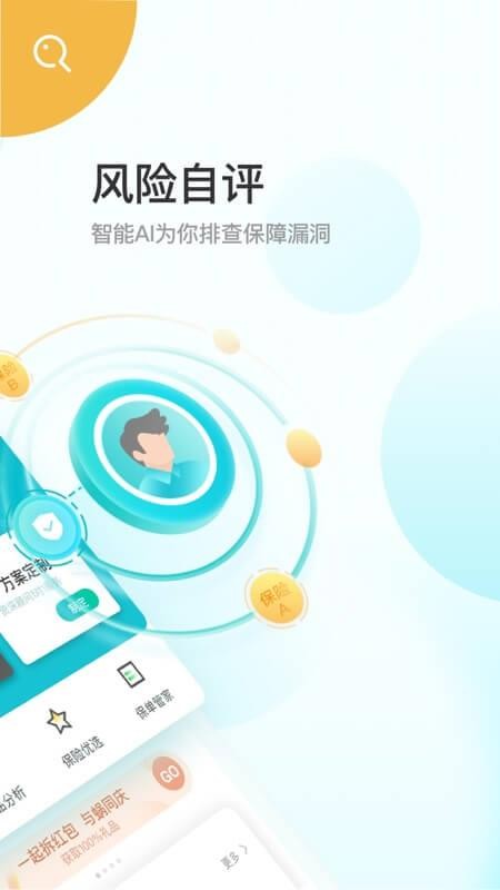 2、在首页中通过智能AI快速评估自己的风险信息,购买合适的保险产品