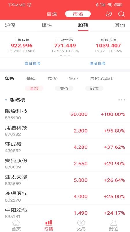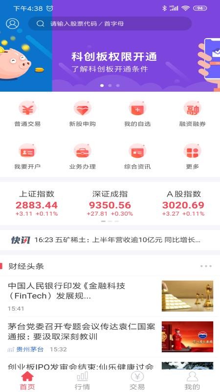 3、进入首页,能够清楚的了解各种证券信息,更好的使用