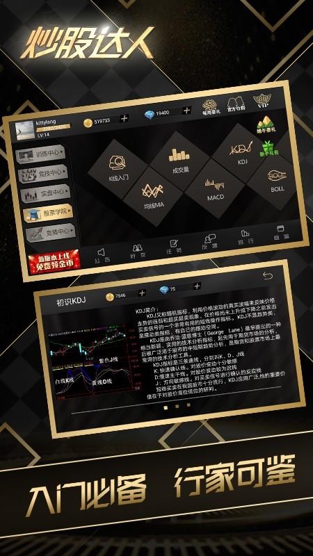 1、提供竞技中心,采用游戏的方式,帮助用户更好的掌握股票知识,快速的使用;