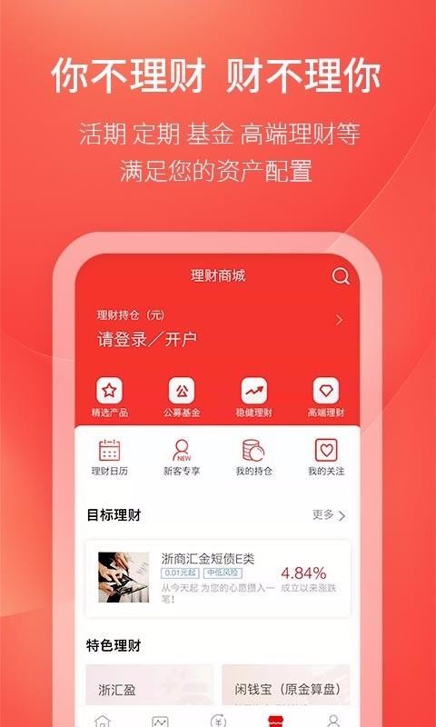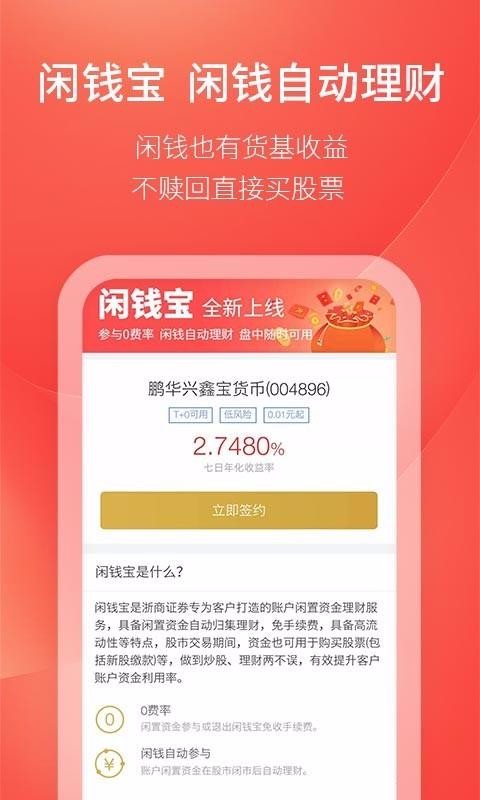 浙商汇金谷是一个投资炒股理财平台,为用户提供了各种类型的理财产品,也专为新用户推荐低风险高收益的产品;用户也可以将闲置的资金存入该账户,自动为你进行理财,让你随时都有收益;支持在线开户,包括股票、基金等账户,在线根据提示的流程即可完成所有的开户操作;选择产品后还可以查看详细的行情介绍,通过图表为你展示了实时的行情变化,让用户可以随时了解动态并选择合适的产品进行投资;还通过大数据分析为你提供了决策参考,选择提供的选股类型,即可查看推荐的产品,让你轻松的进行投资。