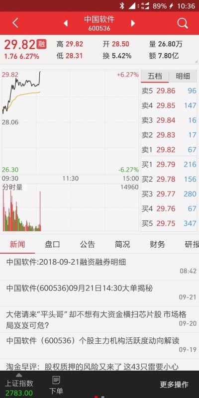 3、提供大盘走势给用户查看,及时的更新推送详细的走势,随时的进行了解;