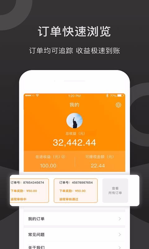 3、是一个专业的返现平台,所有返现实时到账,还可以查看审核的进度;