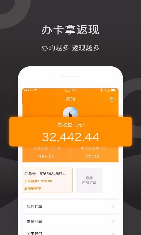 5、办卡办的越多,返现也就越多,可以随时查看获得的总收益,为你详细记录了明细;
