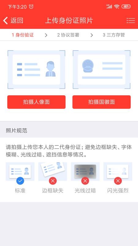 3、点击上传,能够快速的传输你的证件信息,更好的使用