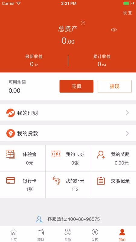 2、在我的页面,查看总资产、我的理财、我的贷款