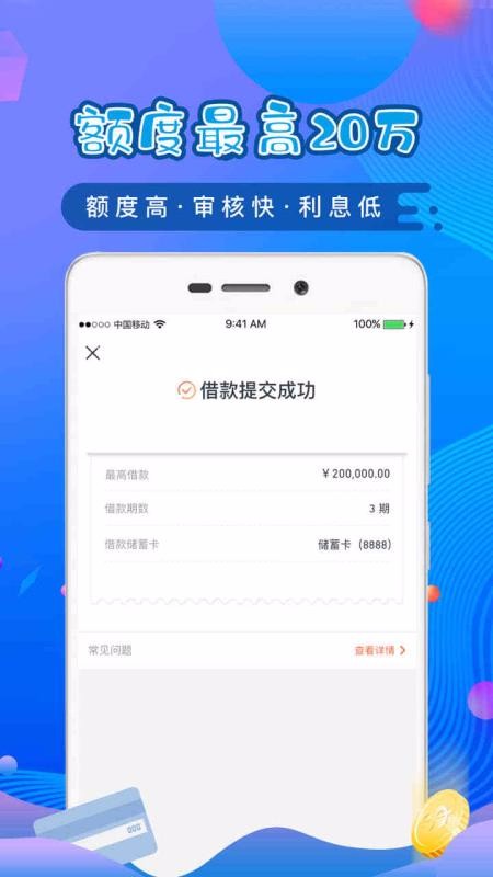 4、上面有很高额度的借款,这里面的借款速度很快,而且借款额度最高能叨叨20万;