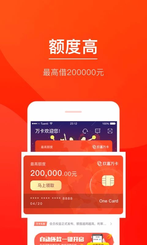 玖富万卡是一款财富管理软件,提高用户的生活质量;用户享受高额度的贷款借款选项,便于用户在用钱阶段能得到帮助,减少用户的生活压力,让用户能完成自己的梦想;提供额度分期还款业务,便于每月还款,减轻用户的还款压力,让生活变得更有动力;还能选择吧自己的的用于信用卡的还款,让用户的个人信用度得到保护,提高生活的质量;还为用户提供了购物网站的信息,便于快速的在线购物,满足自己的购物需求,让生活能更好的进行;用户的个人信息及贷款数额都进行加密保护,让使用更放心。