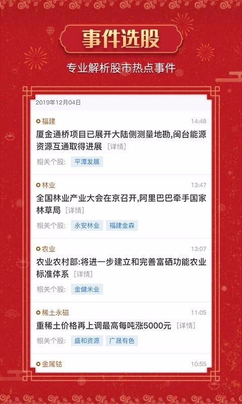 1、按照事件内容选股,可以进入到相关的事件中查看事件的内容并选择相应的股票;