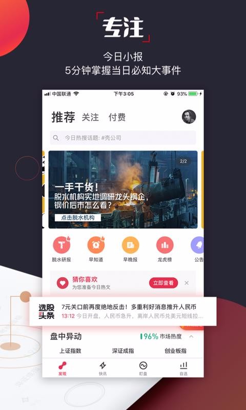 6、推荐了许多的资讯信息专区,比如脱水研报、早知道、早晚报以及龙虎榜等专区;