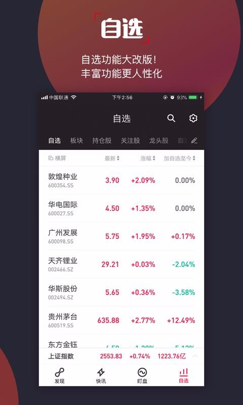 5、切换进入到自选栏中,立即查看该栏展示的不同指数变化趋势