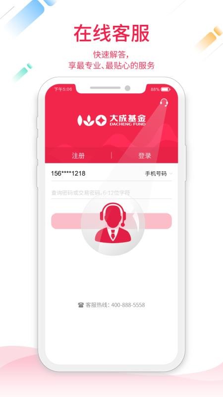 1、点击下载安装大成基金app软件,使用手机号进行注册