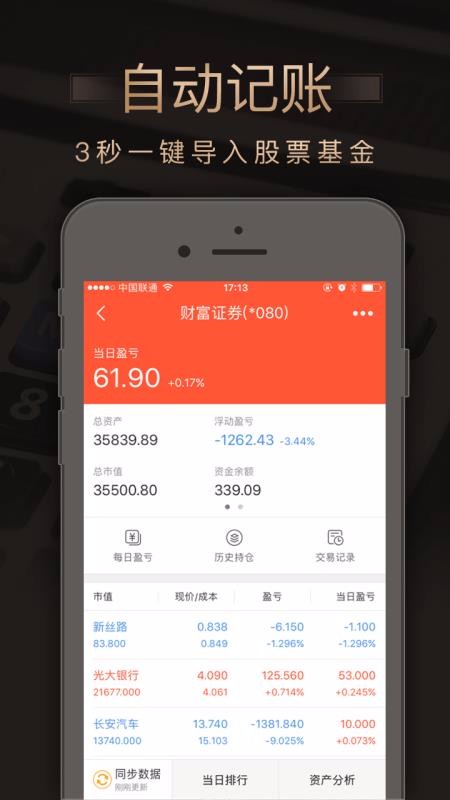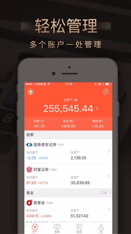 3、资产管理:多种资金进行管理,股票、基金分类查看统计,全部一起管理更加方便;