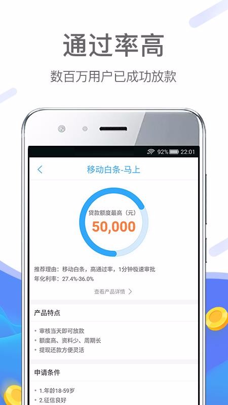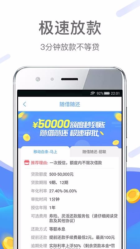 对于一些不懂的理财的用户来说,每到月底都会穷的叮当响,为了生活不得已还要借钱周转,找亲人、朋友借钱,还要欠人情,为了不欠人情,小编今天为大家推荐这款移动手机贷app,它是一款手机借贷软件,具有门槛低、放贷快等特点,在这里借款无需抵押,用户仅需要使用身份证就可以轻松借款五万元,目前已经放贷数百万用户,另外,在利息方面还是比较低的,如果你急需资金周转,这款移动手机贷app是你不错的选择之一,需要的用户可以下载试试看。