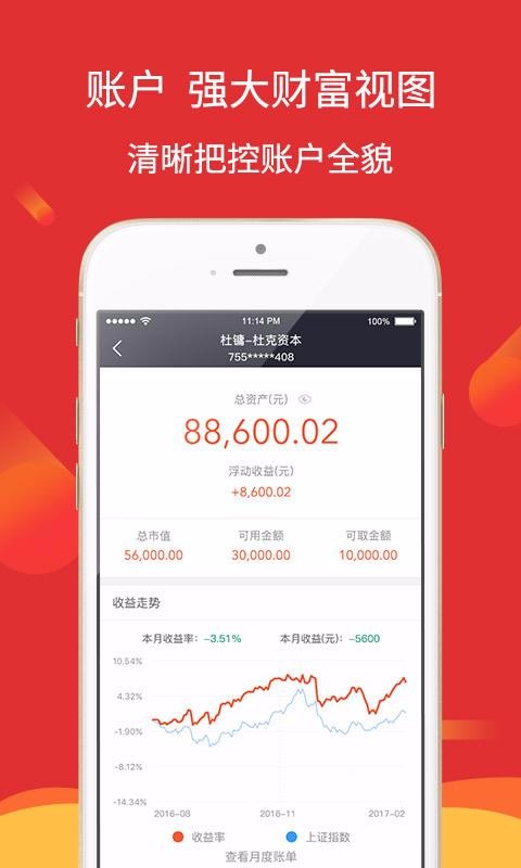 4、账户全貌:强大全面的财富视图帮助你可以查看到精细的账户收益等;