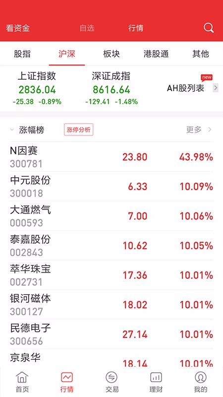 5、行情覆盖了不同栏目的数据,包括港股通、版块、沪深以及其他的栏目数据;