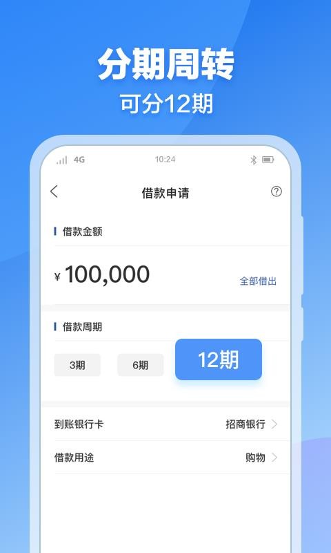 2、能够自由选择借贷的周期,3期、6期、12期随便进行切换;