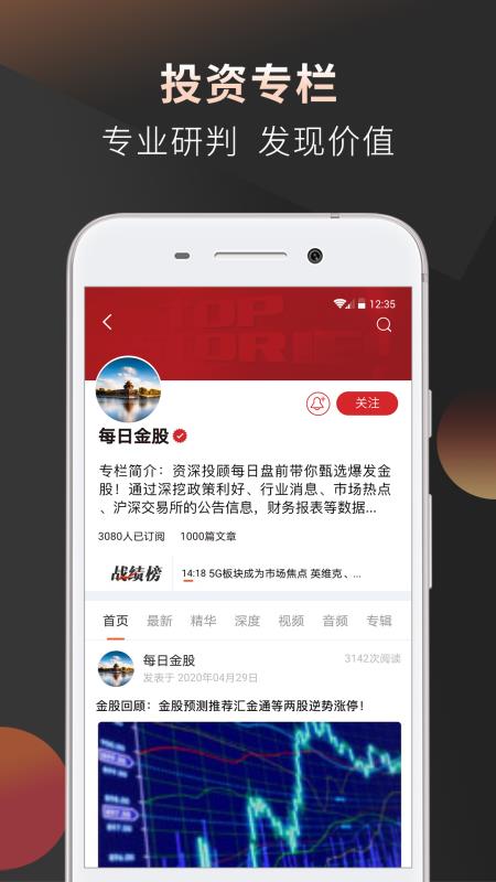 2、关注喜欢的专栏,实时查看对方推送的动态,了解热门股票;