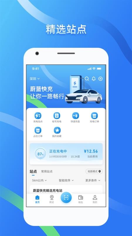 蔚蓝快充app是一款可以为新能源汽车提供快充服务的手机软件,随时可以了解充电桩的实时位置,会智能的为您推荐最近的充电桩,还支持导航功能,可以精准的导航到充电桩的位置进行充电,非常的方便快捷,您可以在平台上查看充电站点的信息情况以及电桩的实时状态,让您能更好的进行充电服务,支持扫码进行充电以及输入桩号进行启动充电,会智能的在线为您实时进行计费,会显示充电的电量情况,随时可结束订单。而且付费还非常的方便快捷,可直接通过我的余额进行在线付款就可以,赶快下载软件试试吧。
