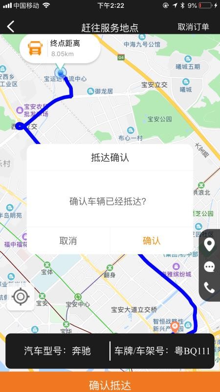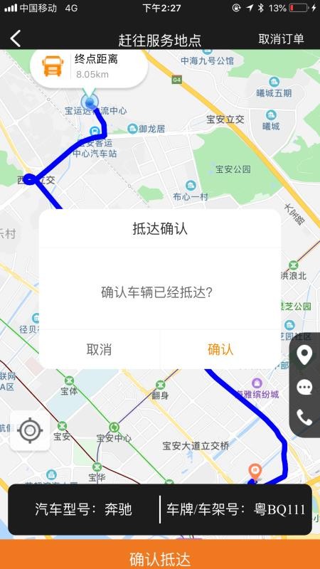 5、工作人员确认抵达后,直接在软件上点击确认抵达,客户就能及时知道;