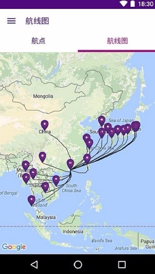 5、展示两种地图形式,在航线图中同时展示了航线和航点两种地图展示效果模式;