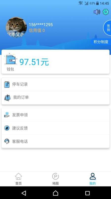 5、在我的页面,浏览钱包数据信息,点击查看订单和停车记录