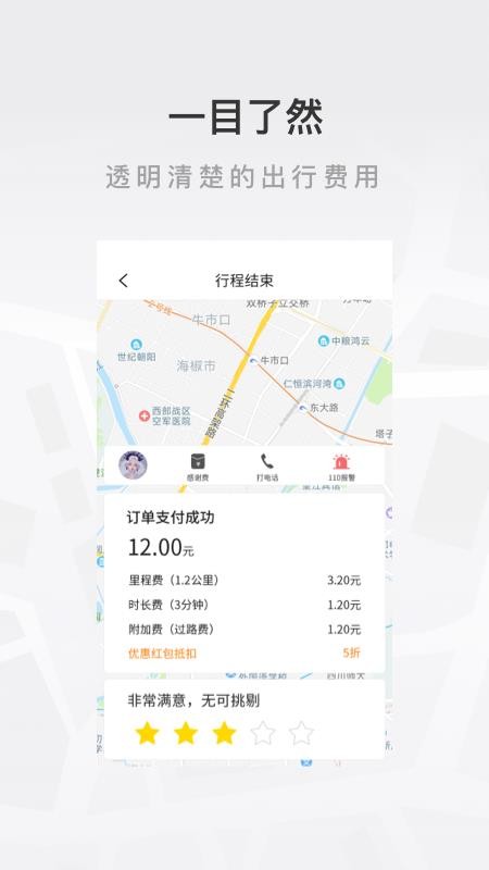 4、清晰透明的出行费用,可以一目了然的查看出行订单的费用数据,实时支付费用;