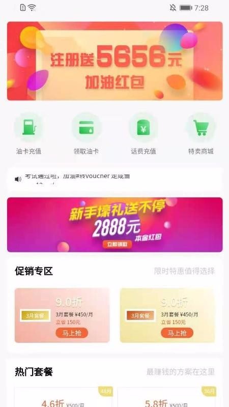 添塍折扣加油是一款为车主们设计打造的便民服务软件,上面为用户提供了油卡充值、领取油卡以及话费充值等常用的服务;用户在该软件中能获得平台众多的优惠礼品,特别是针对新用户群体,还专门提供了注册就送加油红包的活动,另外还有更多的新手好礼可以领取,在该软件中领取的这些红包都可以用于相应的活动抵扣消费中,当满足一定条件的时候就能为用户节省更多的加油费用;该软件为用户带来许多优惠的加油促销产品,这些产品涵盖了加油折扣以及套餐产品等,支持将这些套餐和促销产品进行对比,最终选择适合的产品购买。