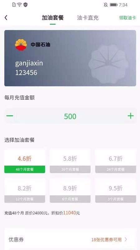 4、提供多种加油套餐折扣,这些折扣有4.6折到9.5折不等的选择,月份越长、折扣越低;