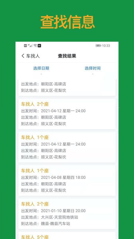 3、你可以根据时间日期进行查找,获得出行车辆,满足你的出行需求;