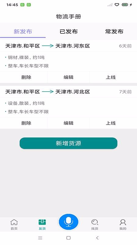 3、快速新增货源,切换到发货中心即可查看新发布的货源并点击新增货源功能发货;