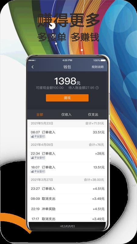 1、在线实时认证自己的资料信息,补齐详细的资料后平台自动为你派单;