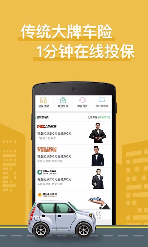 车车车险是一个车险投保交易平台,上面为用户推送了许多优惠的车险活动,同时还提供便捷的自助投保服务,支持在线续保、申请理赔等功能;该平台针对不同地区车辆的不同设置了便捷的车牌筛选条件,有了该切换标签后能让用户更快速地获得想要的车险报价信息,同时还设置了非常强大的报价系统,只要输入车牌号后就能立即获得报价,该价格为用户投保交易提供了借鉴,让价格更透明;软件主页还为用户设置了非常便捷的续保提醒、理赔管家等服务,满足用户从投保交易、到续保,再到理赔申请的一站式自助服务操作需求。