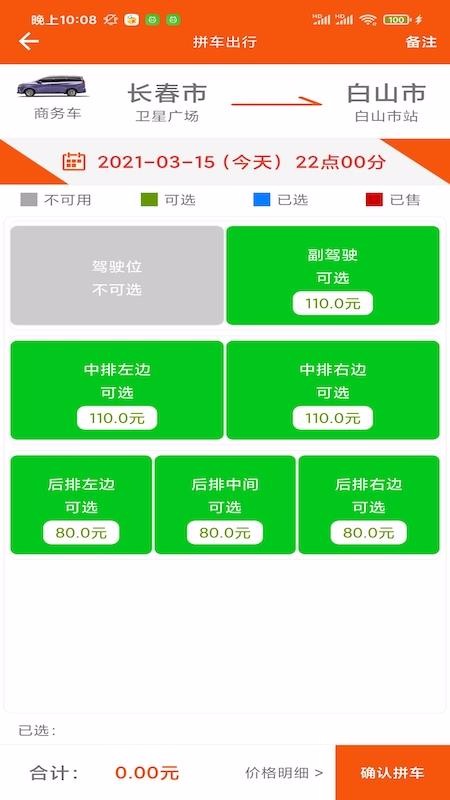3、在线可以选择拼车的座位类型,比如副驾驶、中排、后排等;
