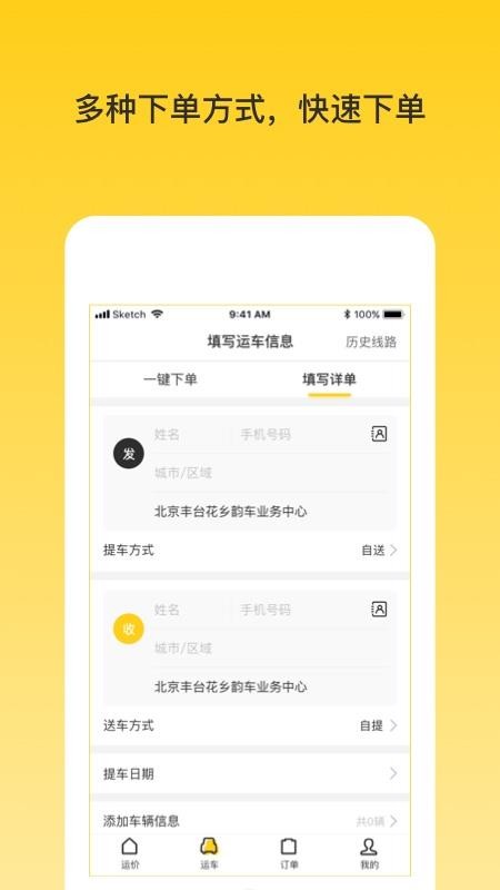 韵车用户端是一款汽车托运的平台,通过平台汽车托运物流下单后,可以轻松了解运输的情况,实现快捷运输,按照用户的需求,在线智能的下单,在填写下单的实时将运输的主要信息填写清楚,包括出发地和目的,轻松了解订单报价的情况,实时获取物流运输报价的详情,这样就可以轻松便捷的与物流公司达成运输的协议,及时托运汽车,加大的降低和客户成本,提高客户的满意度;并且可以实时查看运输的数据状态,在订单的中心可以了解订单详细的情况,可以安装不同的编号来查询和筛选订单,了解详细的订单信息内容。