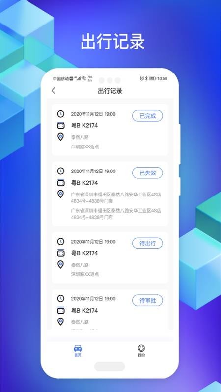 1、出行记录,详细的记录了用户的出行情况,可自由的进行查看;