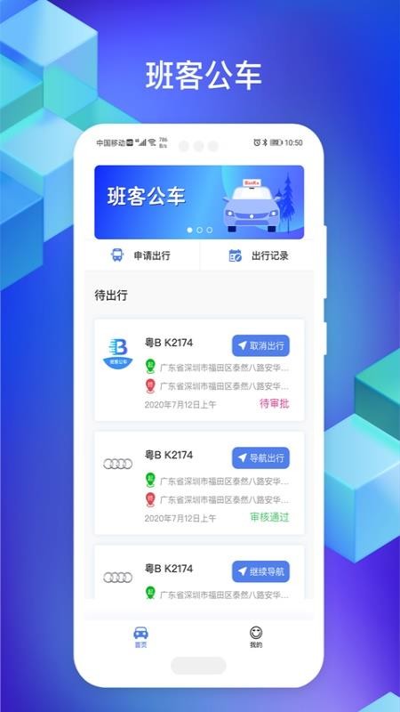 3、在首页中,可查看到各种待出行的用车申请