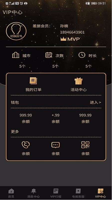 5、进入VIP中心查看个人信息,浏览查看余额数据或进入钱包查看详情