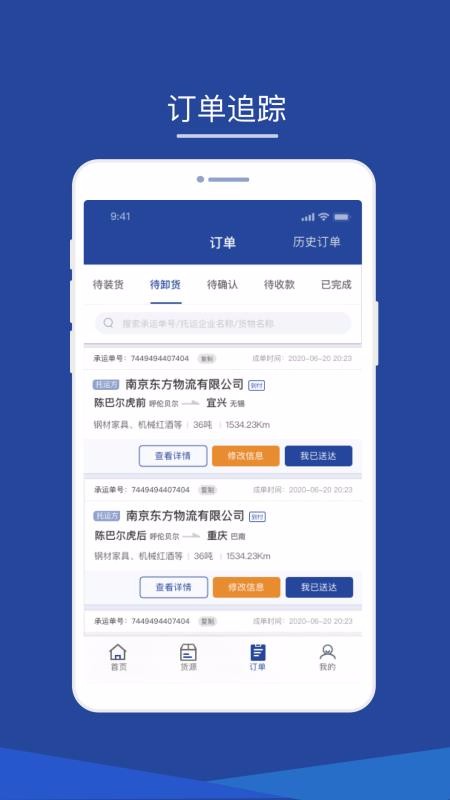 3、查看我已装货的订单,了解装货的情况,并快速配送,提高物流运输的效率,给货主满意的货运服务;