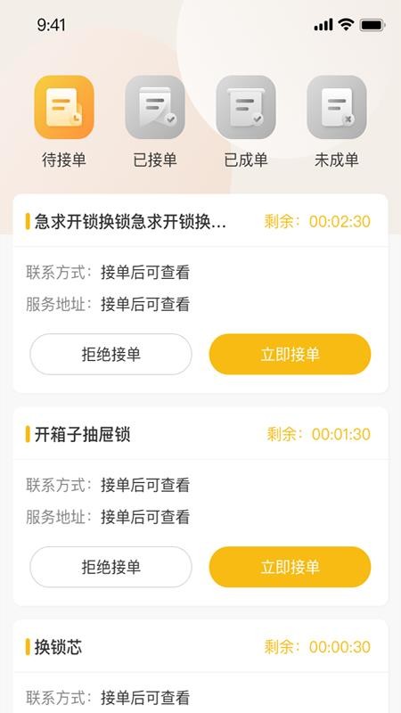 1、拒绝接单,拥有拒绝按钮,一键就可以拒绝各种开锁订单;