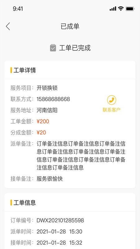 6、已成单,将已完成的订单展现在应用上,可自由浏览;