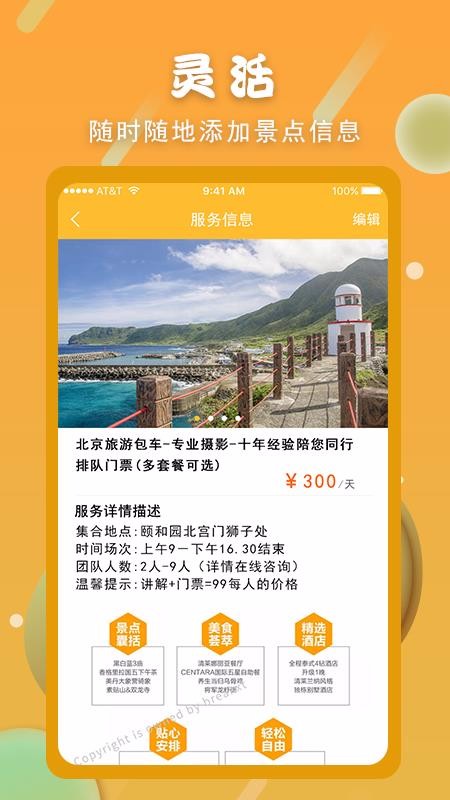 2、灵活的景点产品添加操作,它为用户提供灵活的操作系统,随时随地都能自由添加;