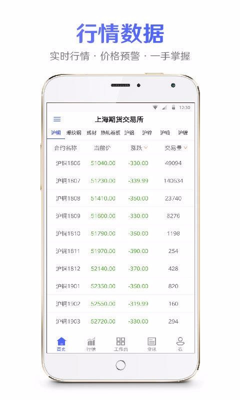 6、一目了然的行情数据,该行情数据页面显示了丰富产品栏目下的当前价格和涨跌数据内容;