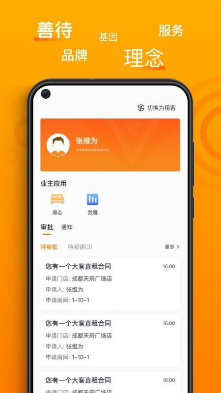 3、切换身份,提供了切换按钮,一键即可切换租客和业主的身份;