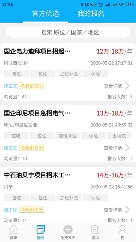 1、为用户提供国外招工版块,让用户能够看到国外的各种招工信息;