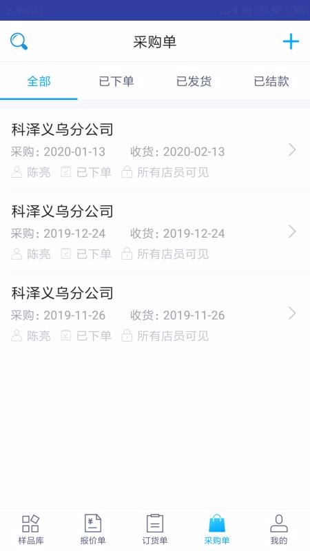 3、提供了报价单、订货单和采购单,分类查看订单信息和单据信息;
