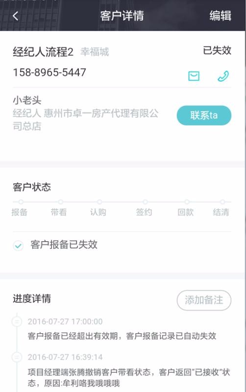 5、丰富清晰的客户状态环节,每个客户详情里面都展示了里面的状态环节进度;