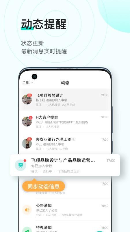 4、有动态提醒,实时的更新工作动态,在平台里能够清楚的进行查看;