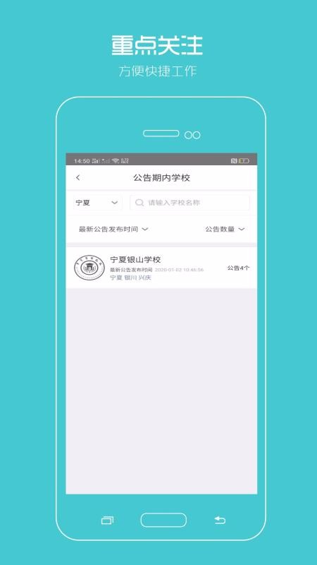 3、可以重点关注公告期内的学校,了解学校发布的公告数量和内容;